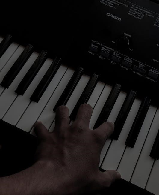 The keyboard should automatically power on upon battery installation; if not‚ press the power switch located on the top right corner. A small LED indicator will briefly illuminate‚ confirming the power status. It’s recommended to use fresh‚ high-quality AAA batteries for optimal performance and longevity.